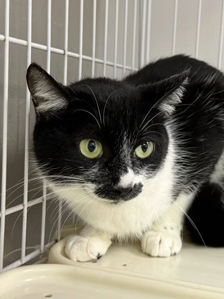 まこ 推定4〜5歳 ♀ 黒白■情報保護日 :2025/1/10体重(g) :4600 -